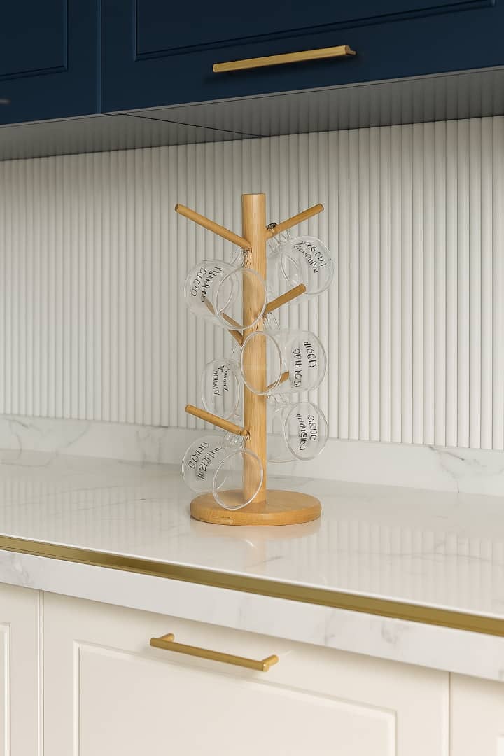 🍵 طراحی آویز چندشاخهای آن باعث میشود بتوانید فنجانها و ماگهای خود را بهصورت مرتب و زیبا آویزان کنید. با این کار نه تنها از شلوغی کابینتها جلوگیری میکنید، بلکه همیشه دسترسی راحتی به فنجانهای روزمرهتان خواهید داشت ✅.
