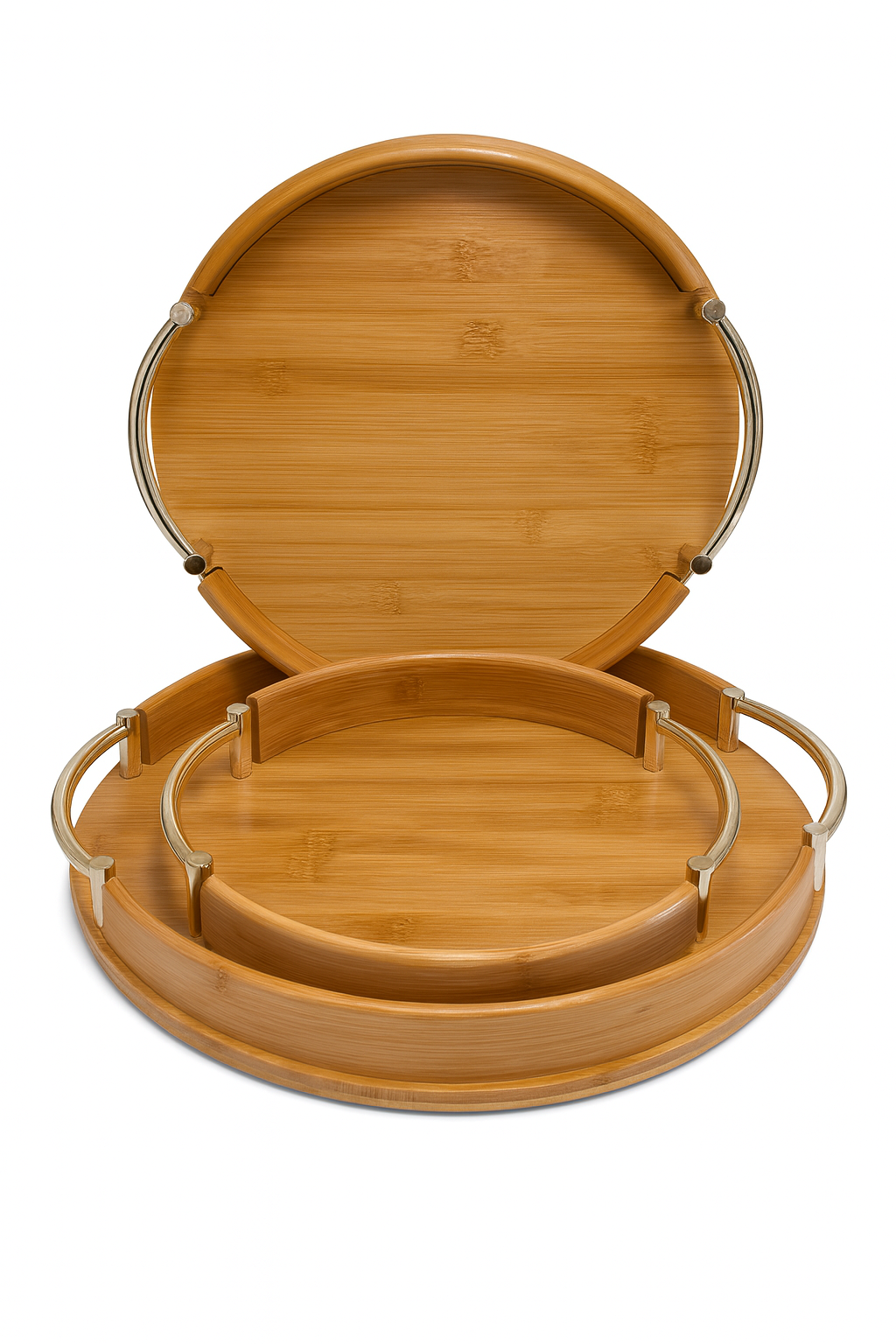 سینی گرد دسته طلایی پاپا – چوب بامبو با کیفیت بالا