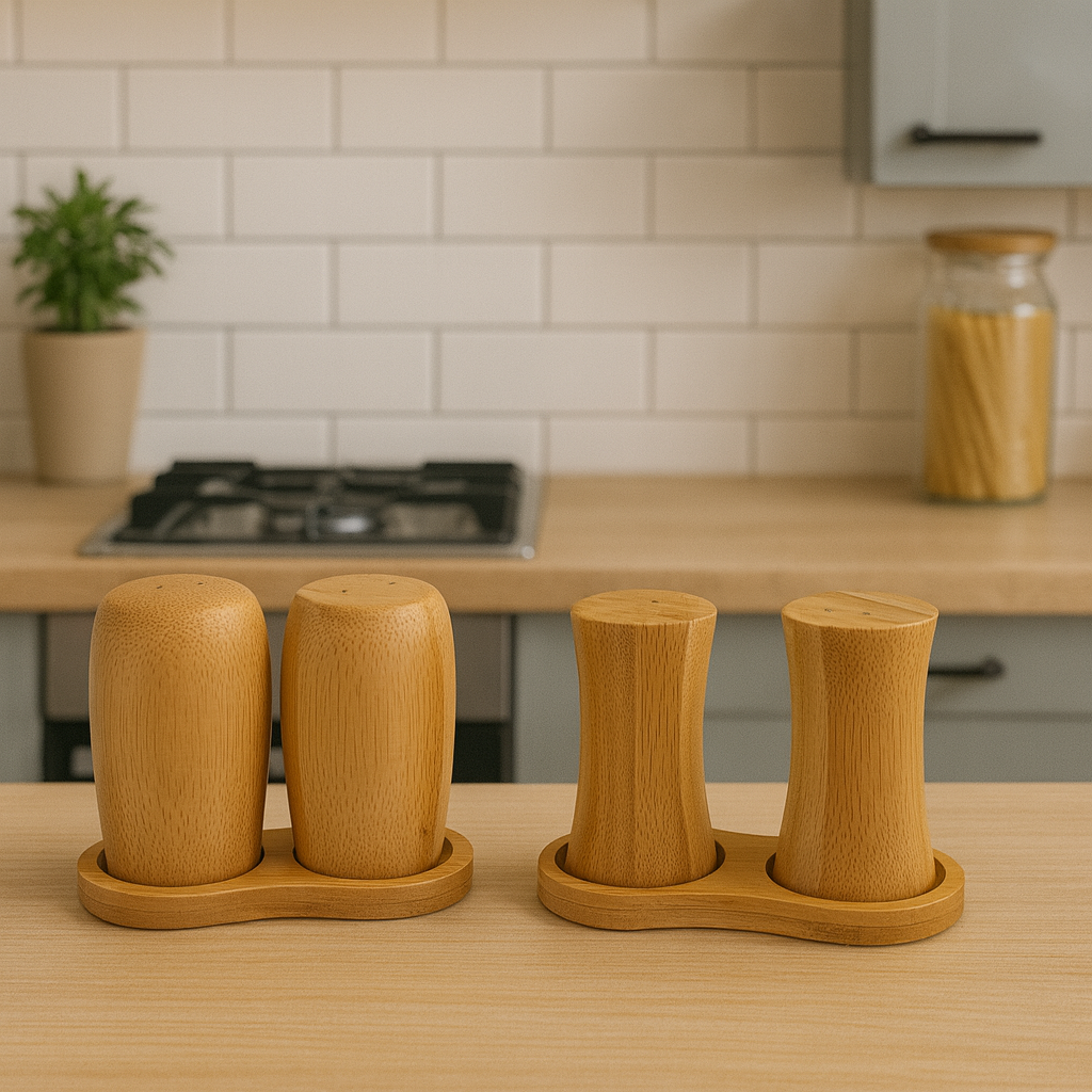نمکدان جفتی بامبو پاپا ترکیبی از طراحی طبیعی و کیفیت بالا است. این محصول از چوب بامبو وارداتی ساخته شده و بافت طبیعی آن زیبایی خاصی به میز غذاخوری شما میبخشد.
