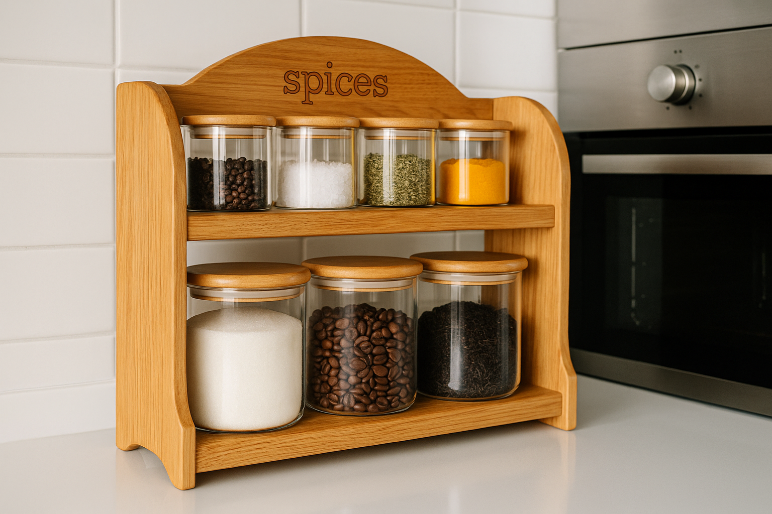 این پاسماوری دو طبقه با ترکیبی از شیشه پیرکس باکیفیت و چوب طبیعی رابروود تایلند، انتخابی عالی برای نظمدهی و نگهداری انواع ادویه، نمک، شکر و چای و … در آشپزخانه شماست. طراحی زیبا و کاربردی این محصول به شما امکان میدهد فضای آشپزخانه را مرتب و منظم نگه دارید.