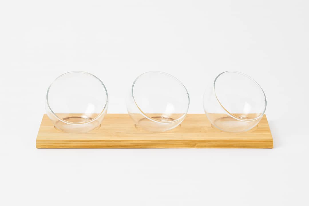 شیشه پیرکس استفادهشده در این کاسهها، مقاوم در برابر حرارت و تغییر دما است؛ به همین دلیل هم میتوانید آنها را برای نگهداری غذاهای سرد یا گرم به کار ببرید و هم از شفافیت خیرهکننده آن برای نمایش رنگ و بافت خوراکیها لذت ببرید. پایه بامبو علاوه بر ایجاد هارمونی طبیعی، باعث استحکام و ثبات کاسهها روی میز میشود و جلوهای لوکس به چیدمان شما میبخشد.